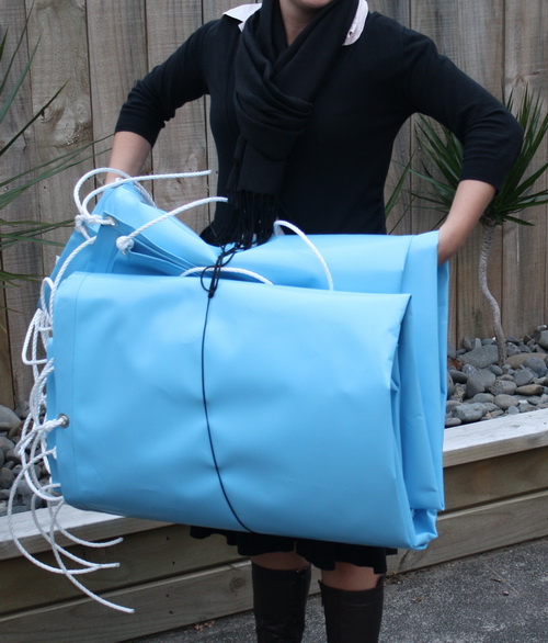Provided with reinforced eyelits and tie off ropes